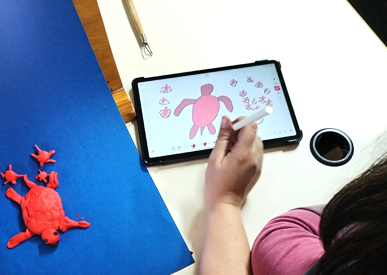 Ils proposent un atelier de création autour du film La tortue rouge et les différentes techniques de cinéma d’animation utilisées dans le film.